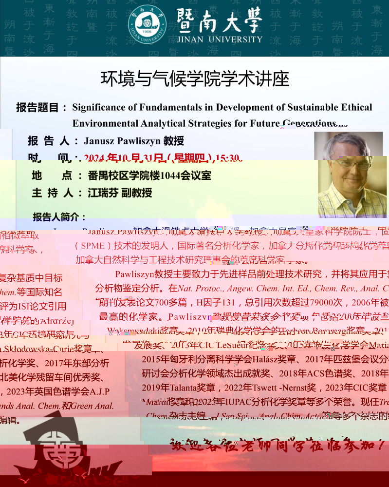 【10月31日講座預告】Janusz Pawliszyn:Significance of Fundamentals in Development of Sustainable Ethical Environmental Analytical Strategies for Future Generations