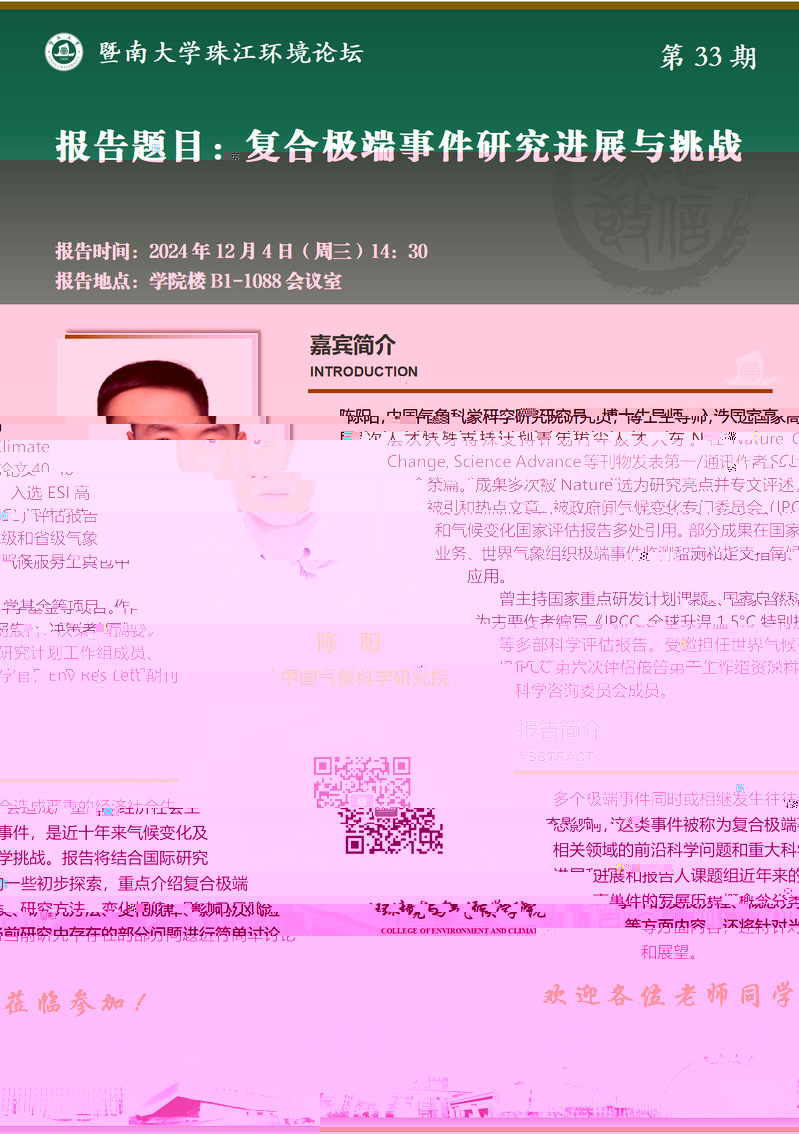 【珠江環境論壇第33期】陳陽:複合極端事件研究進展與挑戰
